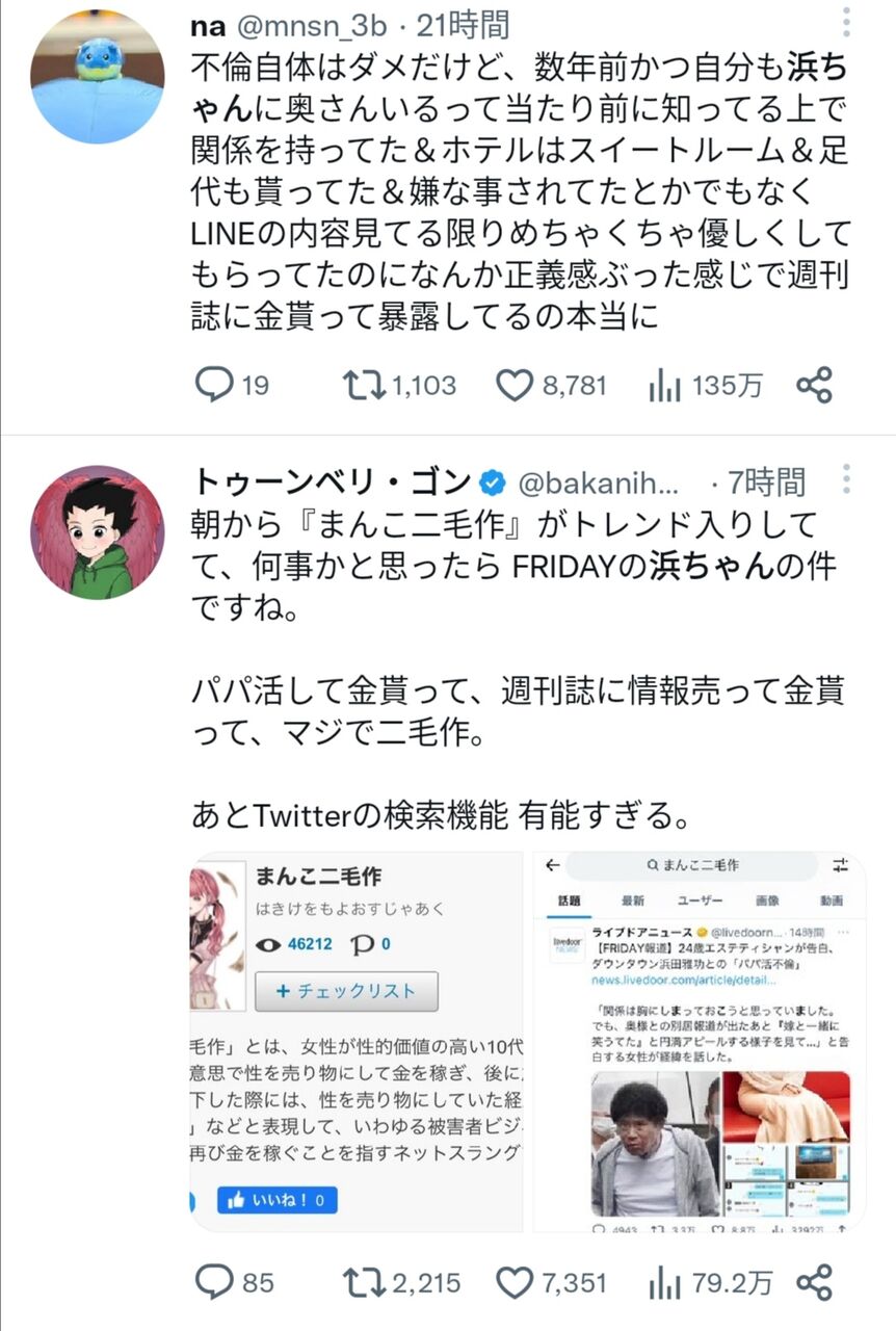 浜田の不倫とかどうでも良くなる程のまんこ二毛作のパワーワード感