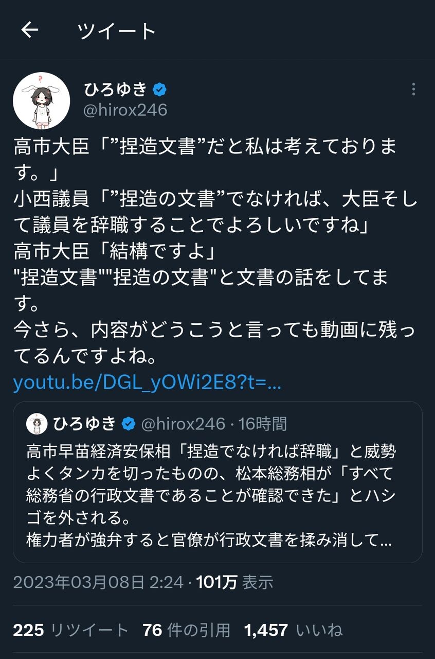 だから行政文書にねつ造があるって話よもみあげる名無し at 2023年03月08日 15:46 ID:k1WqlteF0