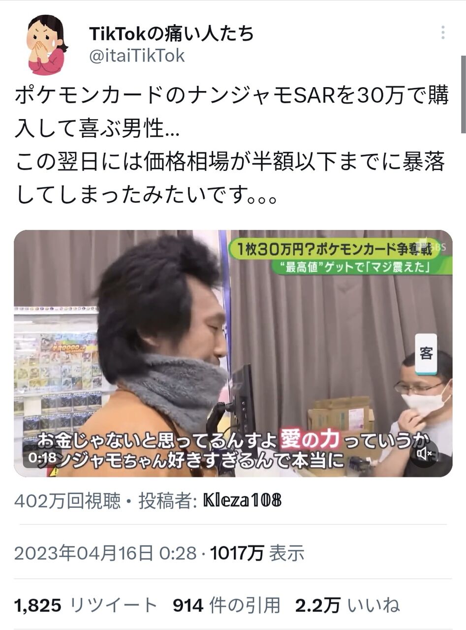 【悲報】30万円のポケモンカードを買ったおっさん、TV番組に晒されてしまう