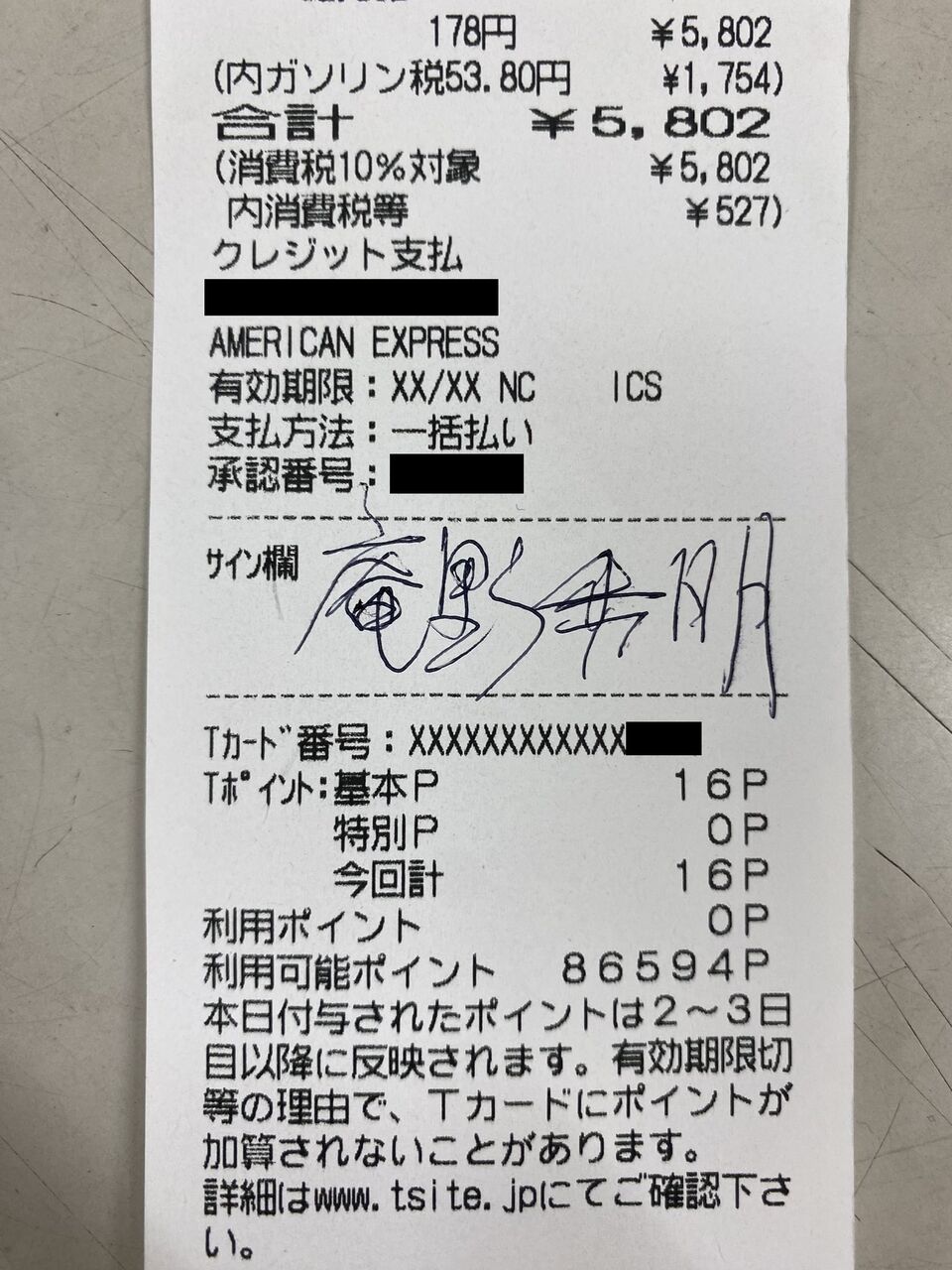 1万円未満のガソリン程度でサイン必要か??