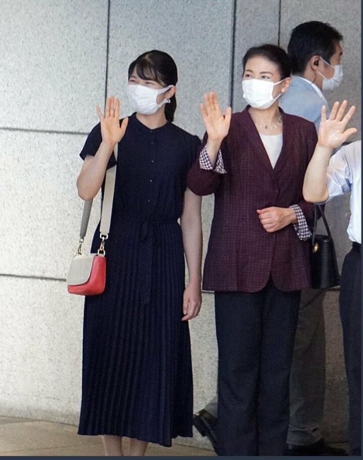 帰京の際の愛子さまは、紺色の無地のワンピースに、ベージュとピンクのバイカラー(2色)のバッグをアクセントにして、リラックスした装いだった。