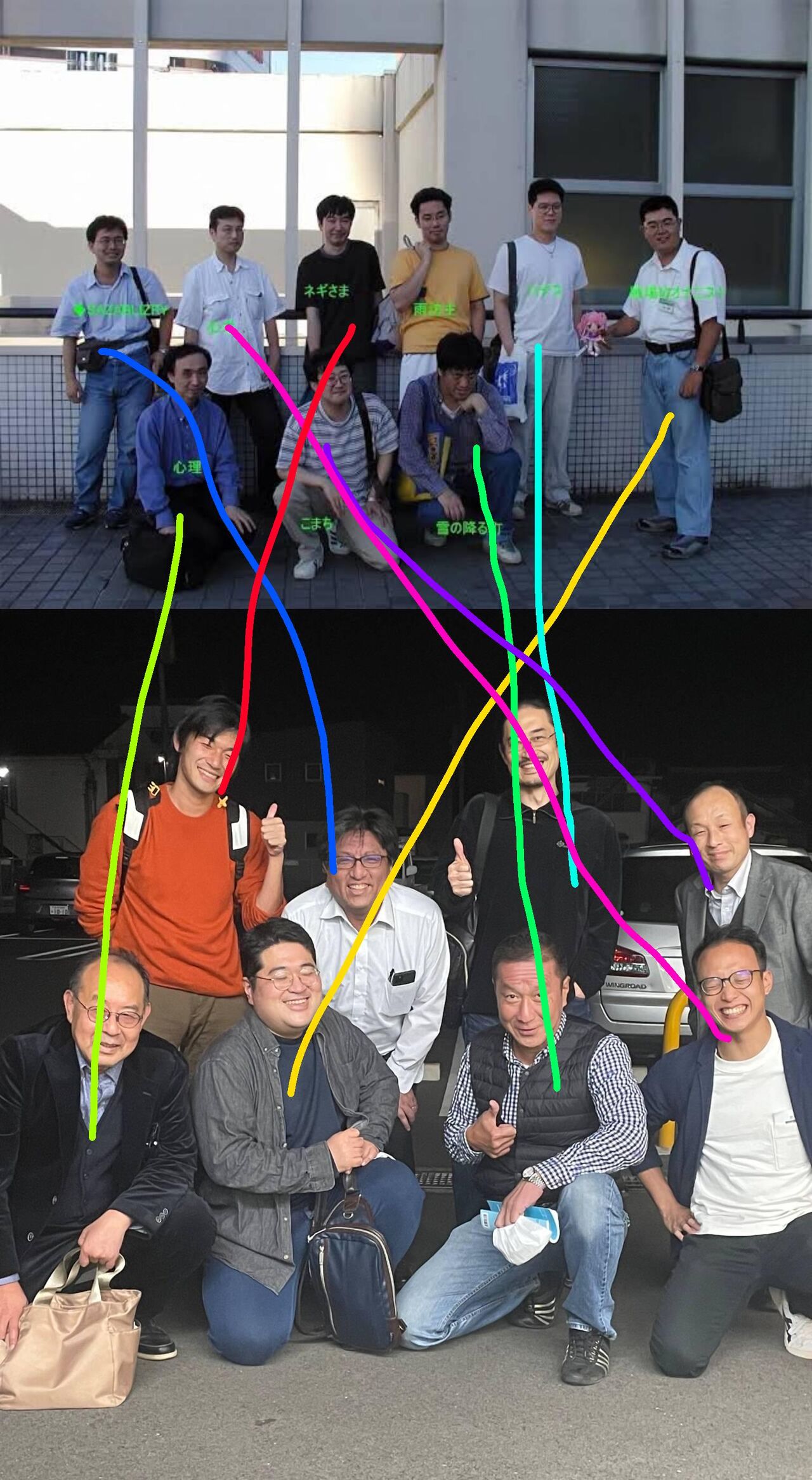 誰かもわからん集合写真に誰かもわからんコテハンを勝手に当てて、また誰かもわからん別の集合写真に勝手に当ててる