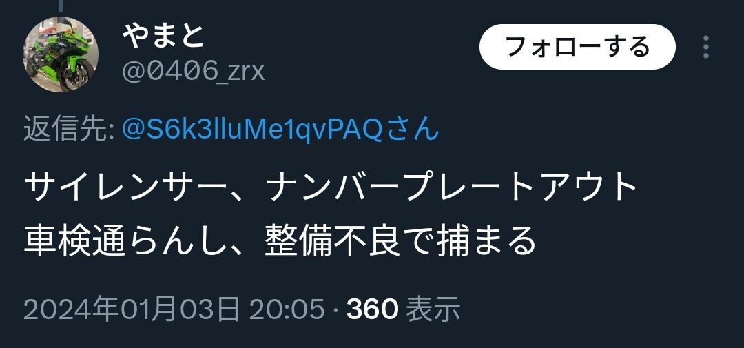 トライアラーでもモトクロッサーでもないただのオンロード用でナンバープレートすら無い目立ちたがりの犯罪者at 2024年01月04日 10:47 ID:iRnDBRo50