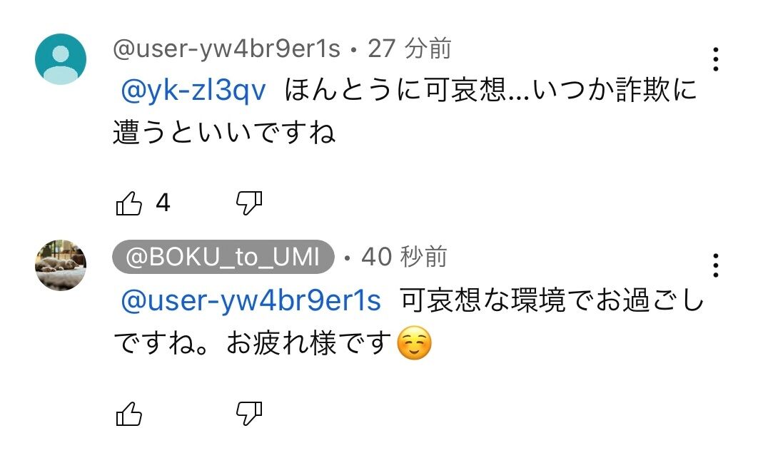 こういう匿名掲示板で話題になって否定的なレスしたりするのは気持ちわかるけど、今も本人のアカウントにわざわざ行って誹謗中傷をしてるやつも闇深いよな。