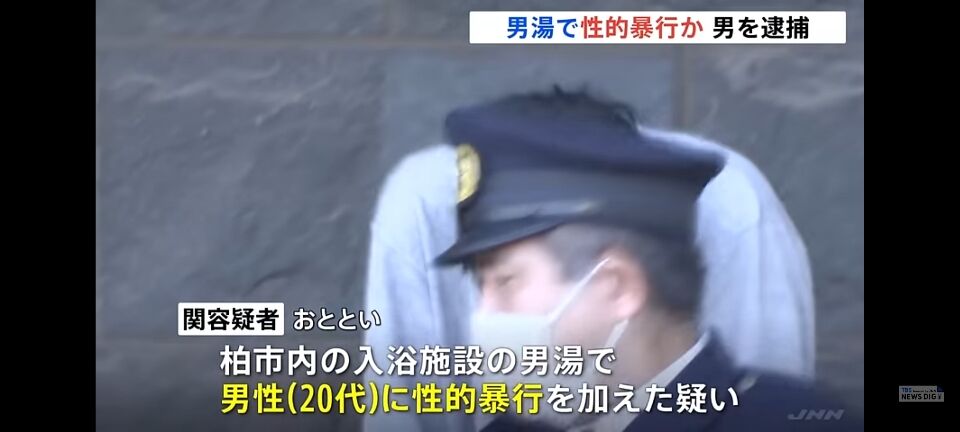 千葉県柏市の入浴施設で20代の男性に性的暴行を加えたとして、35歳の自称英語教師の男が逮捕・送検されました。