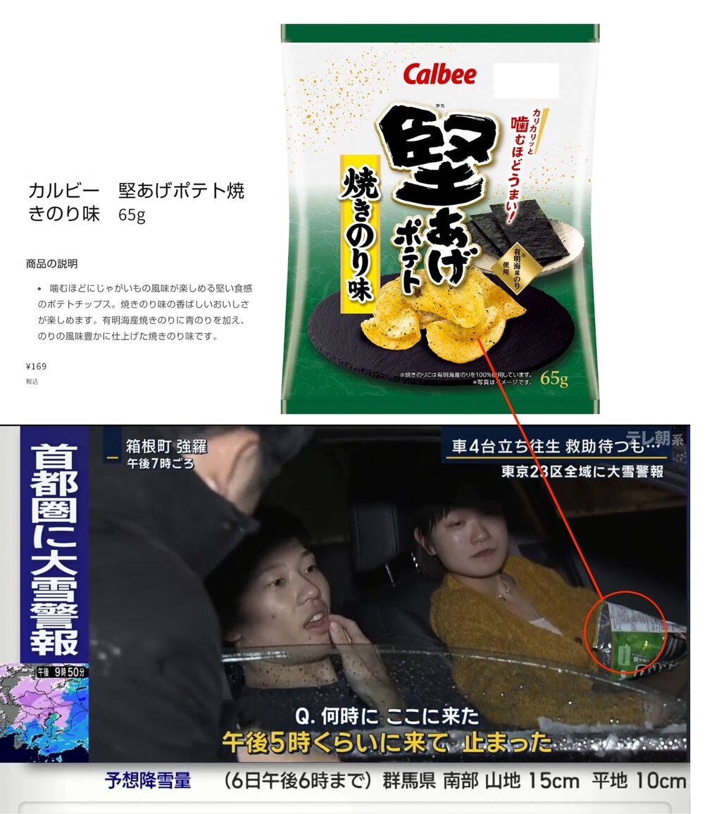 【悲報】積雪で立ち往生したカップル、堅あげポテトしか食料がない