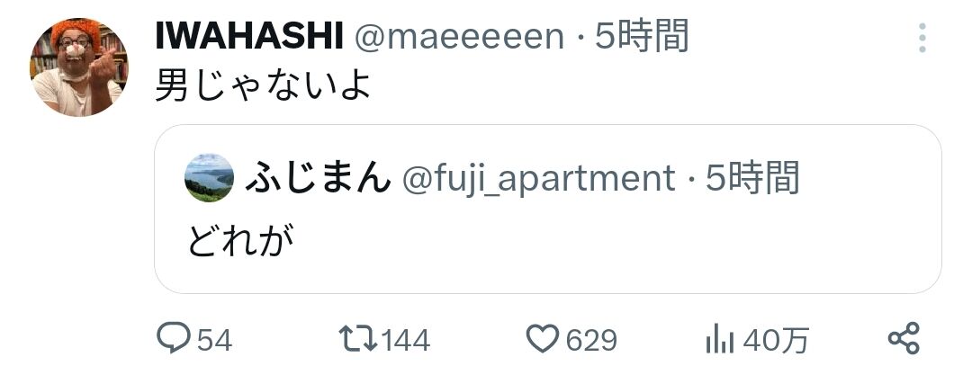 岩橋の相方はものまねの営業で食っていけそうもみあげる名無し at 2024年02月20日 21:50 ID:nL8WIWAg0