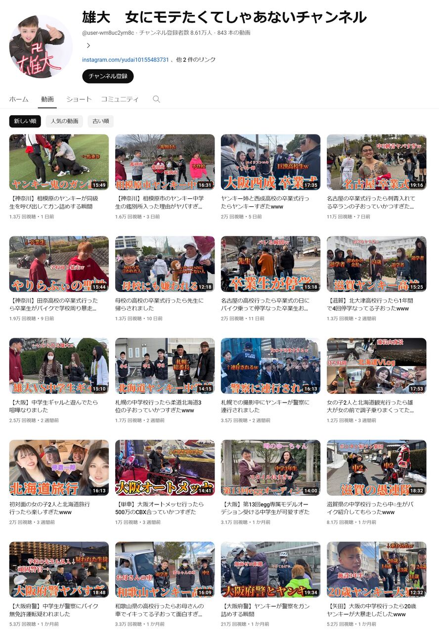 クソガキ中坊ヤンキー取材してる雄大チャンネルに出てきたやつか