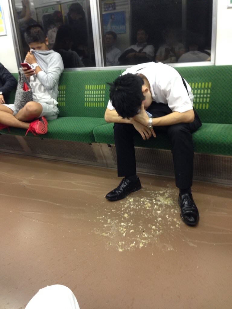 電車内でゲロ吐いて連れに「あーすっきりした」って言ってた女なら見たことある