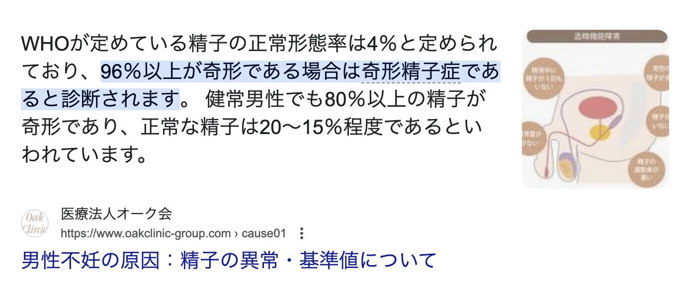 奇形率96%以下なら正常値って初めて知ったわ. at 2024年07月23日 12:11 ID:71QRGKRU0