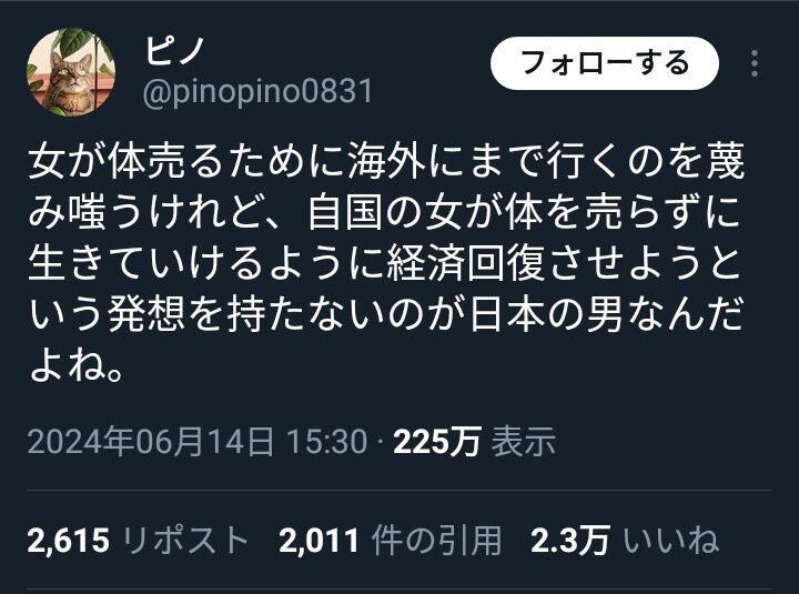 もう「日本人女性」というのが蔑称になりつつあるな、世界でat 2024年08月10日 20:39 ID:ERpPGkwu0