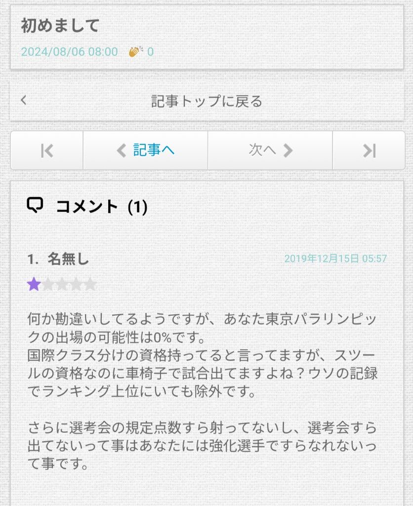 知名度ほぼゼロのパラリンピック代表のアンチなんてそんなおるわけないもんな