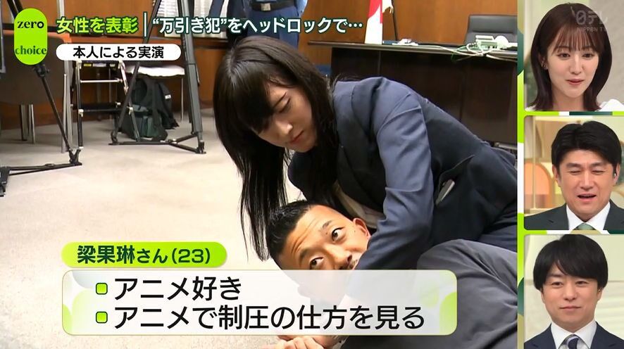 【朗報】23歳の美女さん、コンビニ強盗をヘッドロックで取り押さえ表彰される