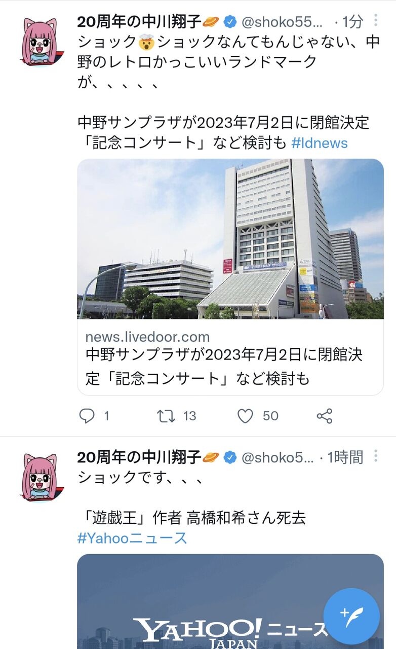 中川は「東京REMIX族」(J−WAVE)、「山田五郎と中川翔子の『リミックスZ』」(JFN)とラジオ番組で15年以上にわたって山田氏と共演している。4日にX(旧ツイッター)を更新し、「山田五郎さん、お父さんみたいに思っています、五郎さんとずっとスカシカシパンや深海や宇宙や変な生き物についてこれからも話したい。絶対ミラクル起きるから大丈夫と信じます」と長い付き合いである山田氏に向けてつづった。