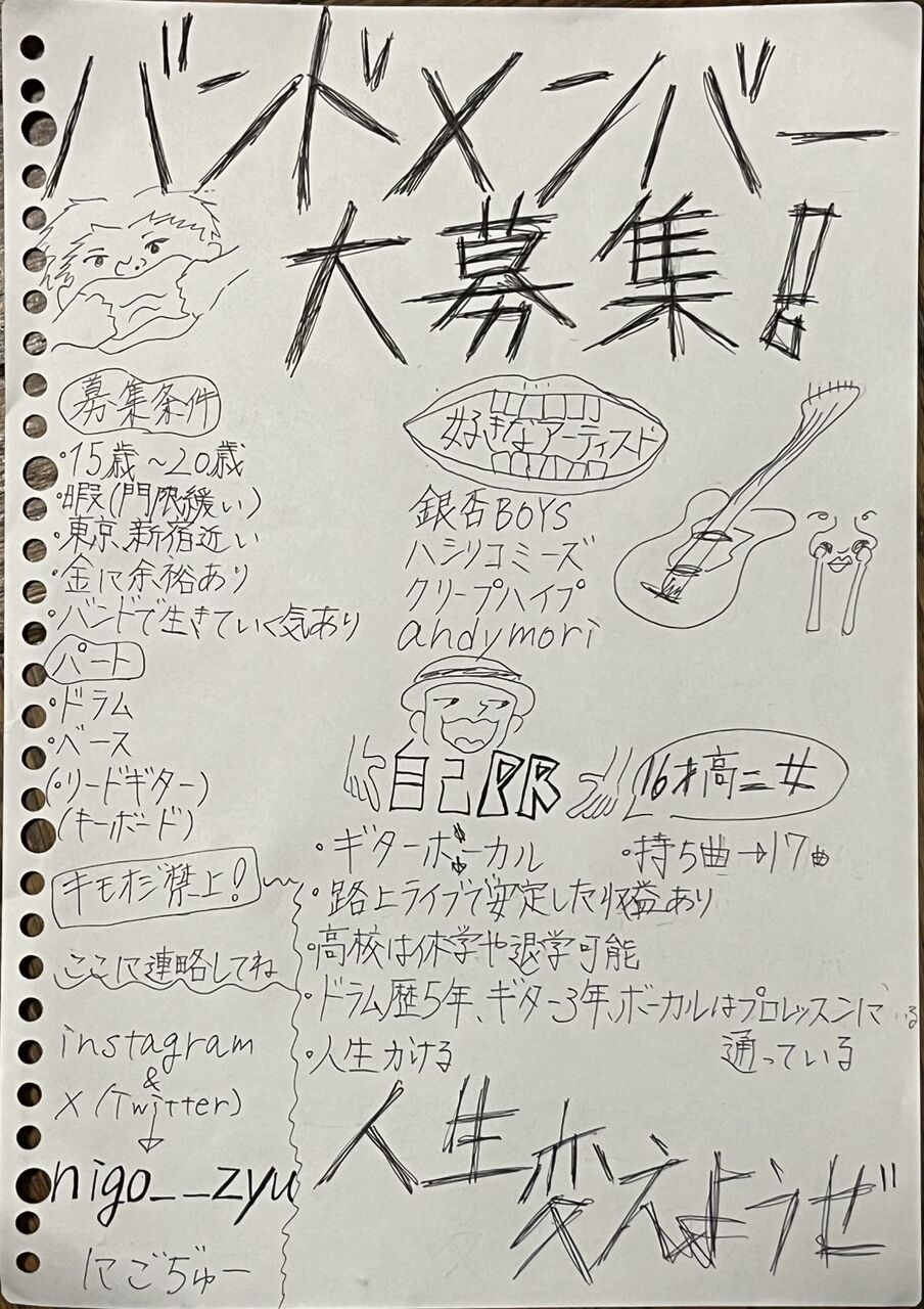 【画像】16歳JK達のバンドメンバー募集がガチすぎると話題に