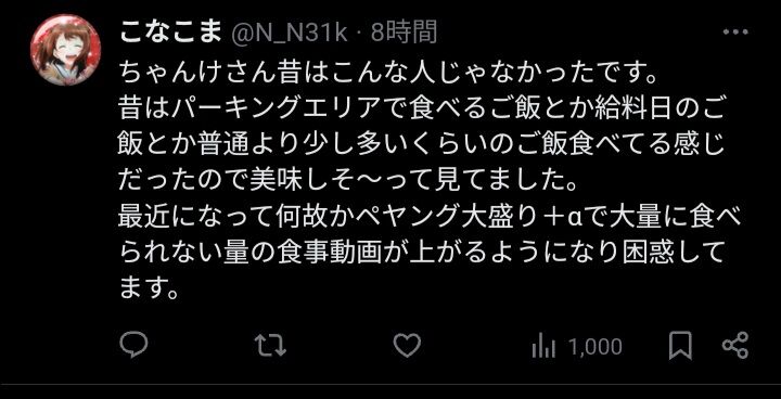本人は多分昔に大食いの動画でバズったからこすった結果このザマなんだろうけどもみあげる名無し at 2024年10月23日 01:58 ID:2Kwt82M90 -