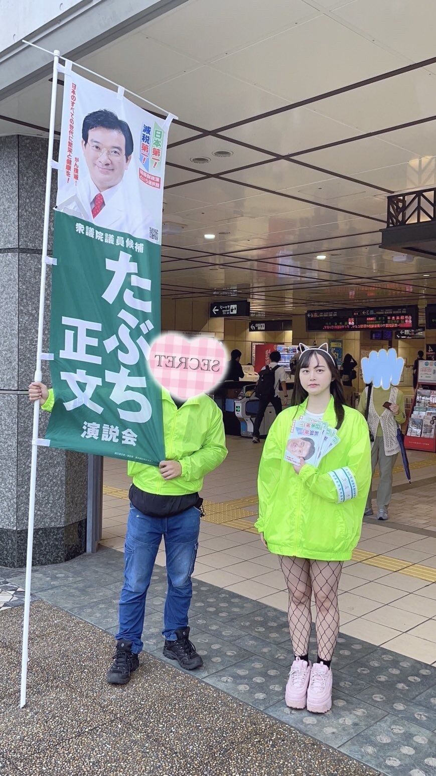 【画像】田淵正文候補、ミニスカ尻出し女子を従えて選挙運動してしまう