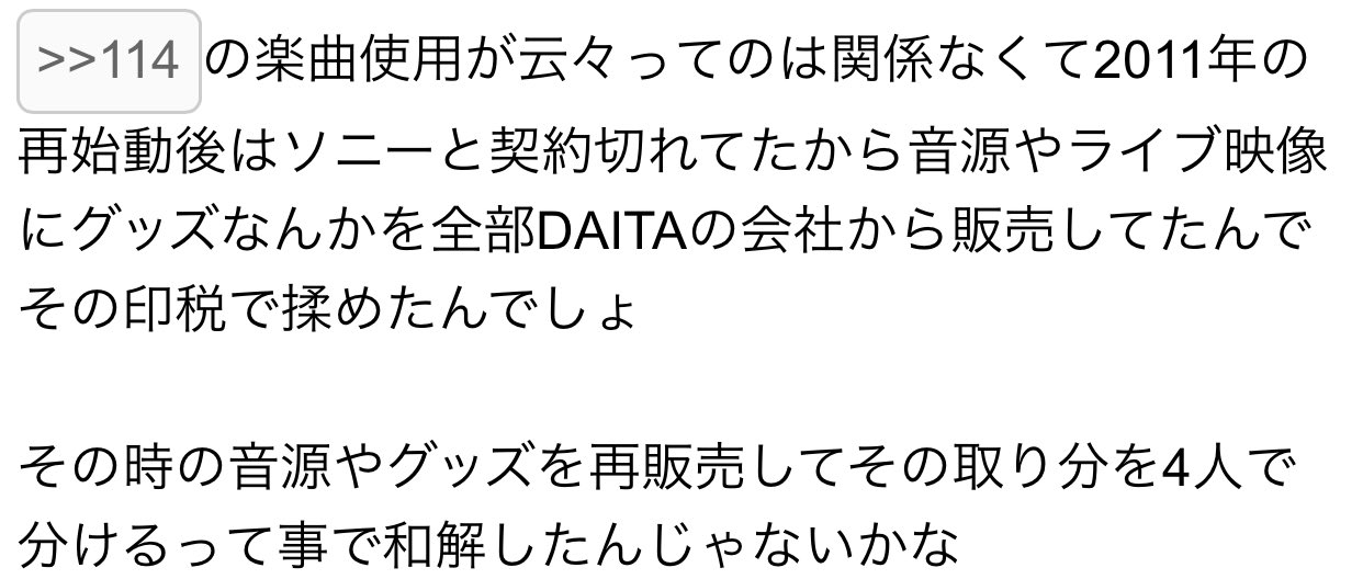 作詞作曲やってるならグループ名にすると揉めるってことかもみあげる名無し at 2024年11月04日 18:46 ID:.wIo15lT0