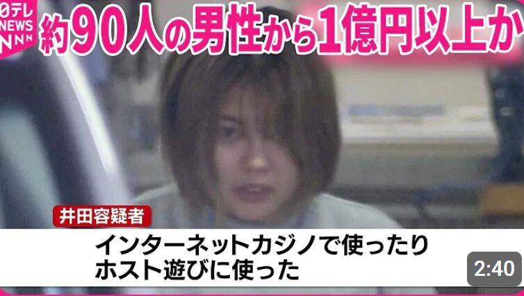 マッチングアプリで知り合った男性に恋愛感情を抱かせ、現金をだまし取ったなどとして、警視庁は、無職井田しずく容疑者(27)=住居不定=ら女2人を詐欺などの疑いで逮捕し、7日発表した。井田容疑者は「うそを言って相手を信用させ、お金を受け取り、インターネットカジノやホスト遊びに使った」などと容疑を認めているという。同庁は、井田容疑者が少なくとも約90人の男性から計約1億円をだまし取ったとみている。