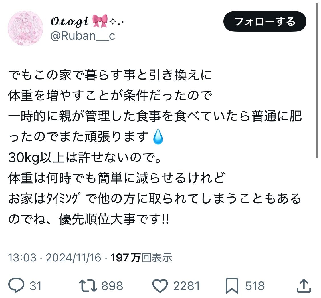 カウンセリング受けて体重増やしてほしいat 2024年11月18日 07:22 ID:dfZUbXwn0