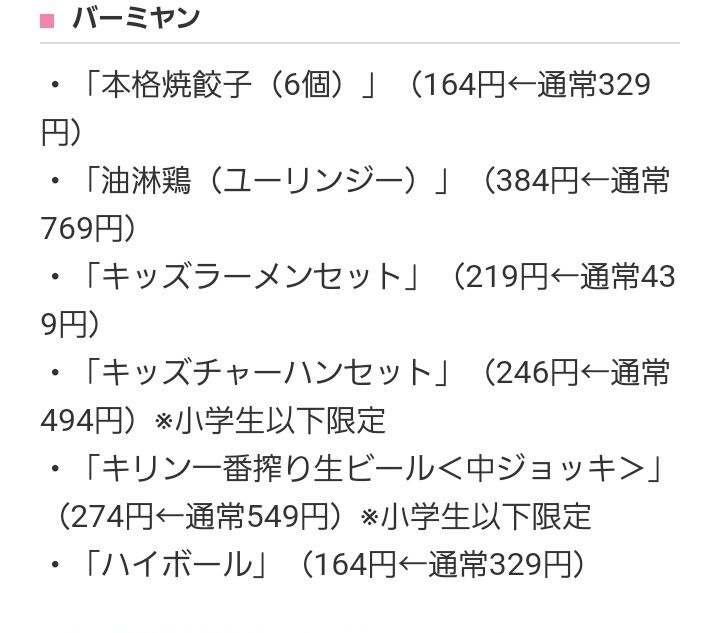 【速報】バーミヤンで小学生以下限定でキリン生ビール中ジョッキが半額!!