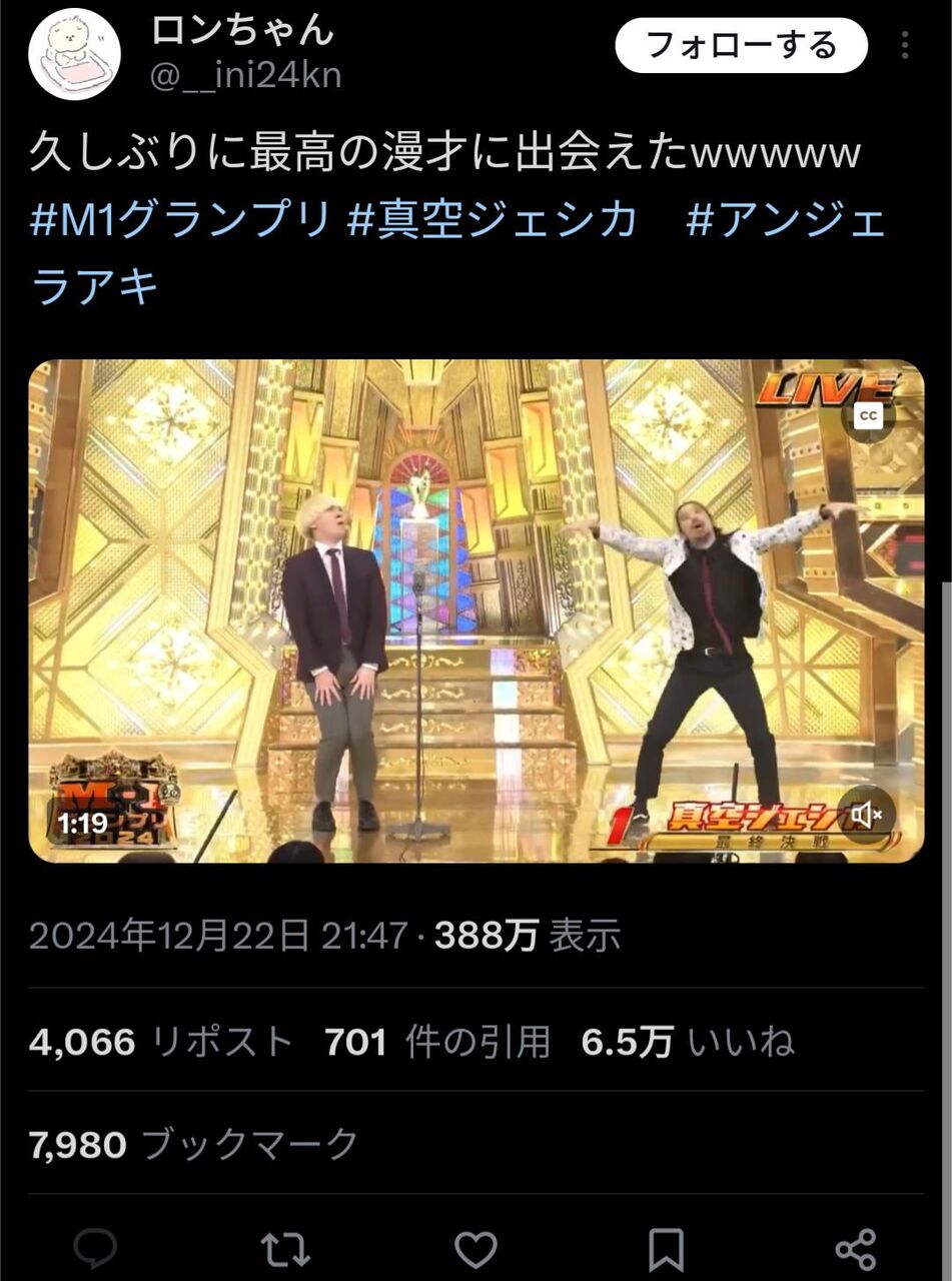 その中でも真空ジェシカの2本目一番良かったわあ at 2024年12月25日 22:56 ID:KWDv8GLh0 -