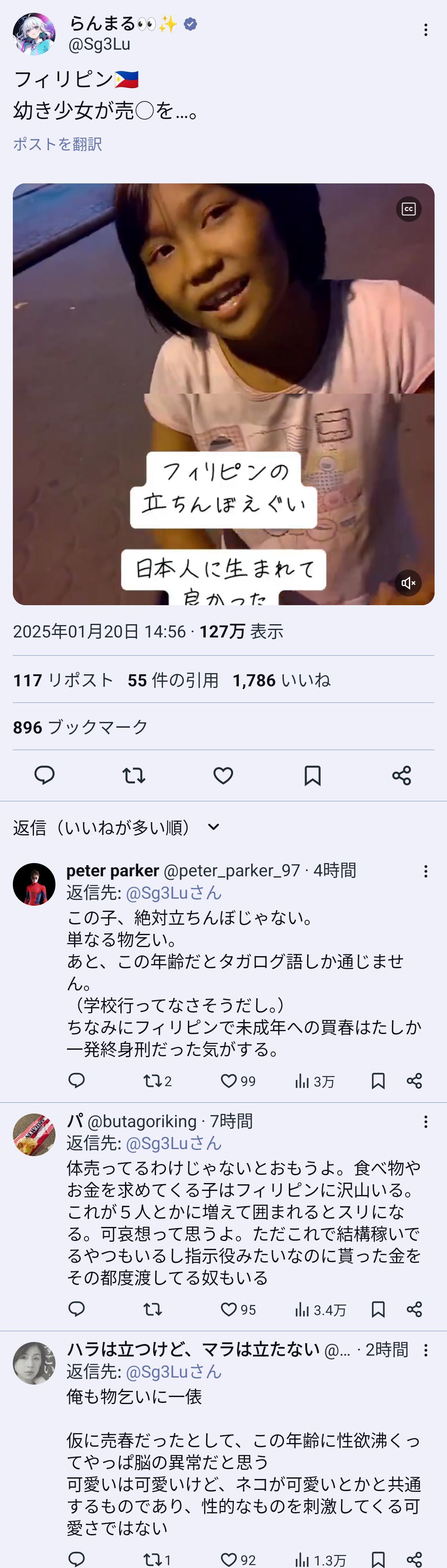 日本より厳しいフィリピンでこんな目立つ児童の立ちんぼ買ったら即逮捕で終身刑だからもみあげる名無し at 2025年01月21日 23:13 ID:LgcVbv5f0