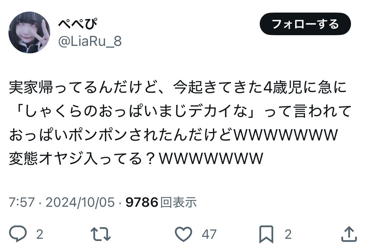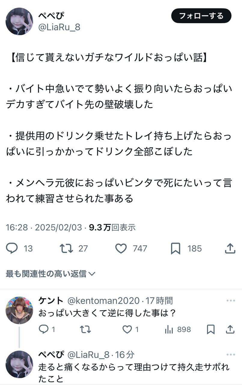 おっぱいは好きだけどねもみあげる名無し at 2025年02月05日 22:28 ID:v7Plrvdm0 -