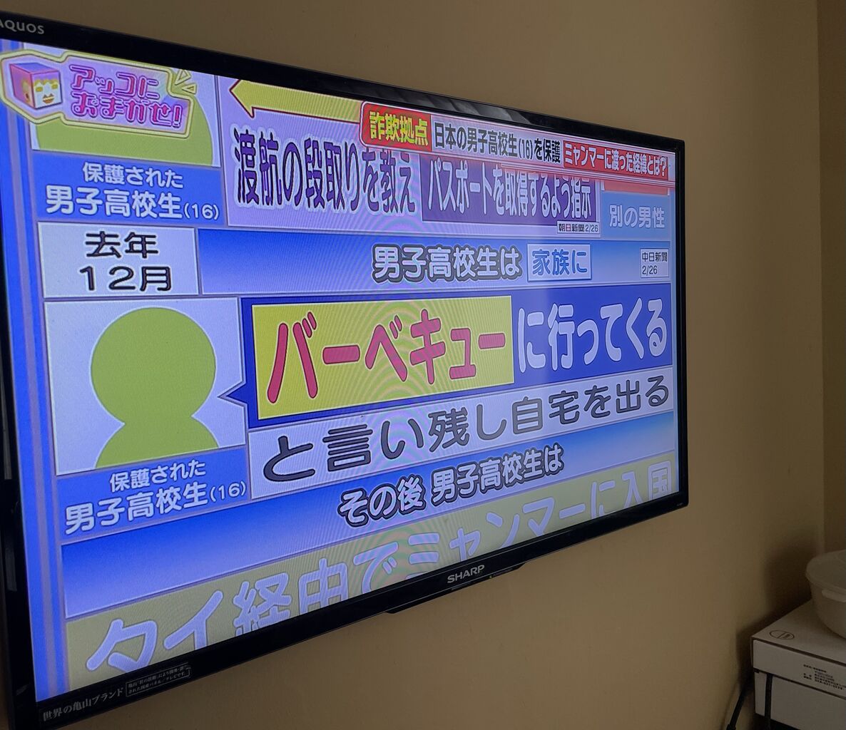 バーベキューに行ってくると自宅を出た日本人高校生、ミャンマーの特殊詐欺拠点で保護される