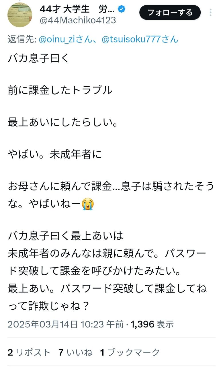https://x.com/44Machiko4123/status/1900359544410431899