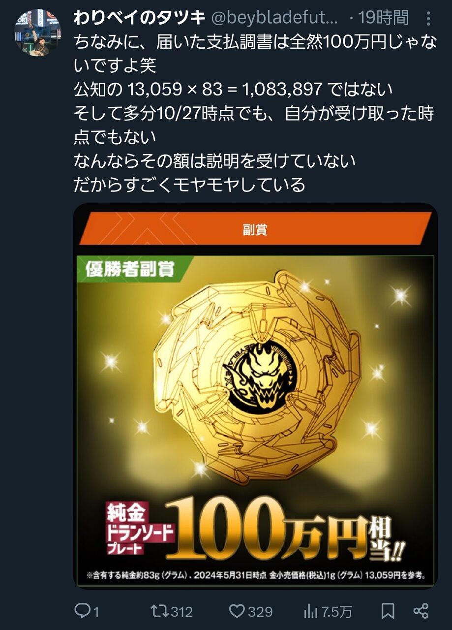 【悲報】ベイブレードの大会で優勝した人、税金を取られる