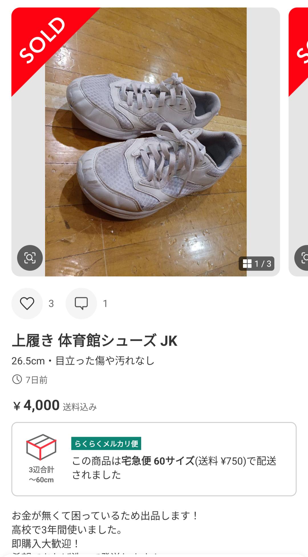 JKのくっさいくっさい上履きを3000円4000円で売るなんて正気の沙汰じゃねえな