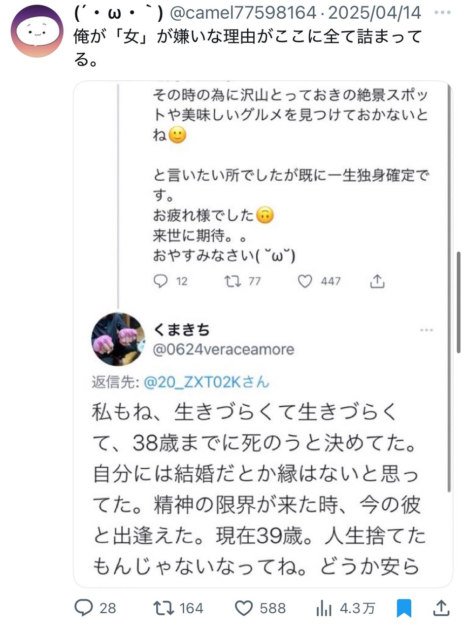 行動原理が同性へのマウントもみあげる名無し at 2025年04月29日 11:52 ID:zoTQoldr0