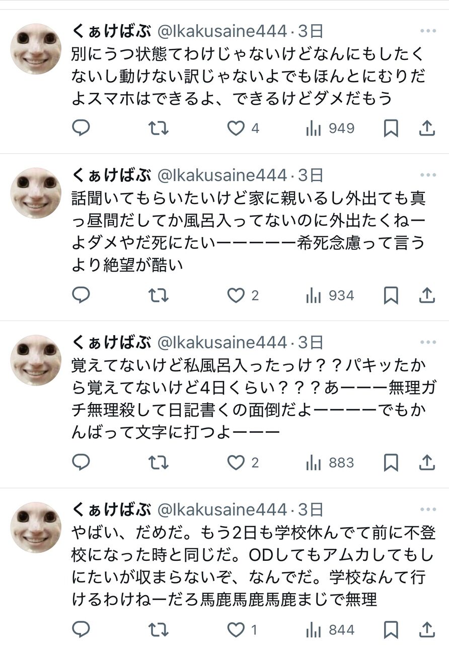 伸びないから死んだことにして別垢でまた構ってちゃんするんだろな