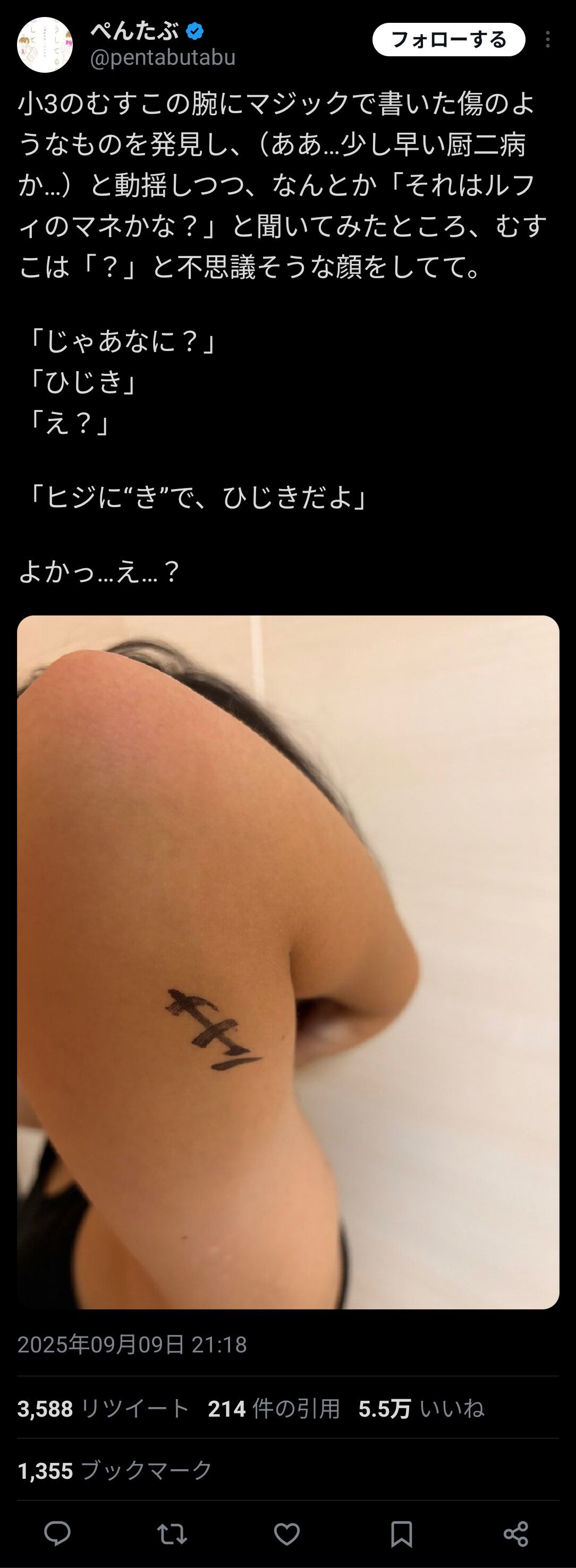 子供なら「前腕部」に文字を書くもみあげる名無し at 2025年09月10日 21:14 ID:V7bDC8Sb0 -