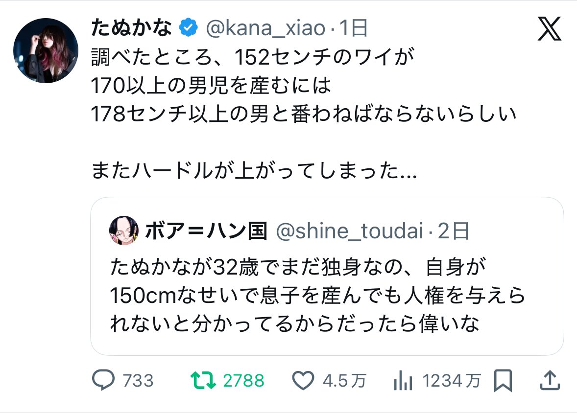 たぬかなに貢いでたのって身長は170cm超えてて、ホビット煽りして俺は奴らとは違うって奴な気がするわ