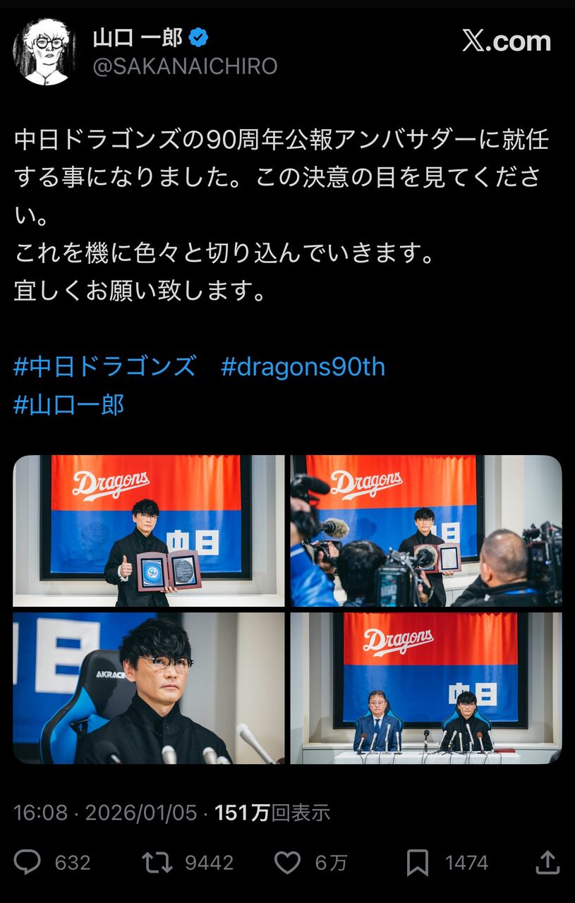 中日が弱過ぎて鬱発症した人だっけ?もみあげる名無し at 2026年01月06日 01:14 ID:Ds3rvWIB0